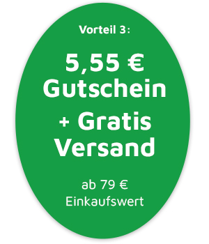 - Den zusätzlichen 5,55 € Gutschein erhältst Du ab einem Mindesteinkaufswert von 79 €.