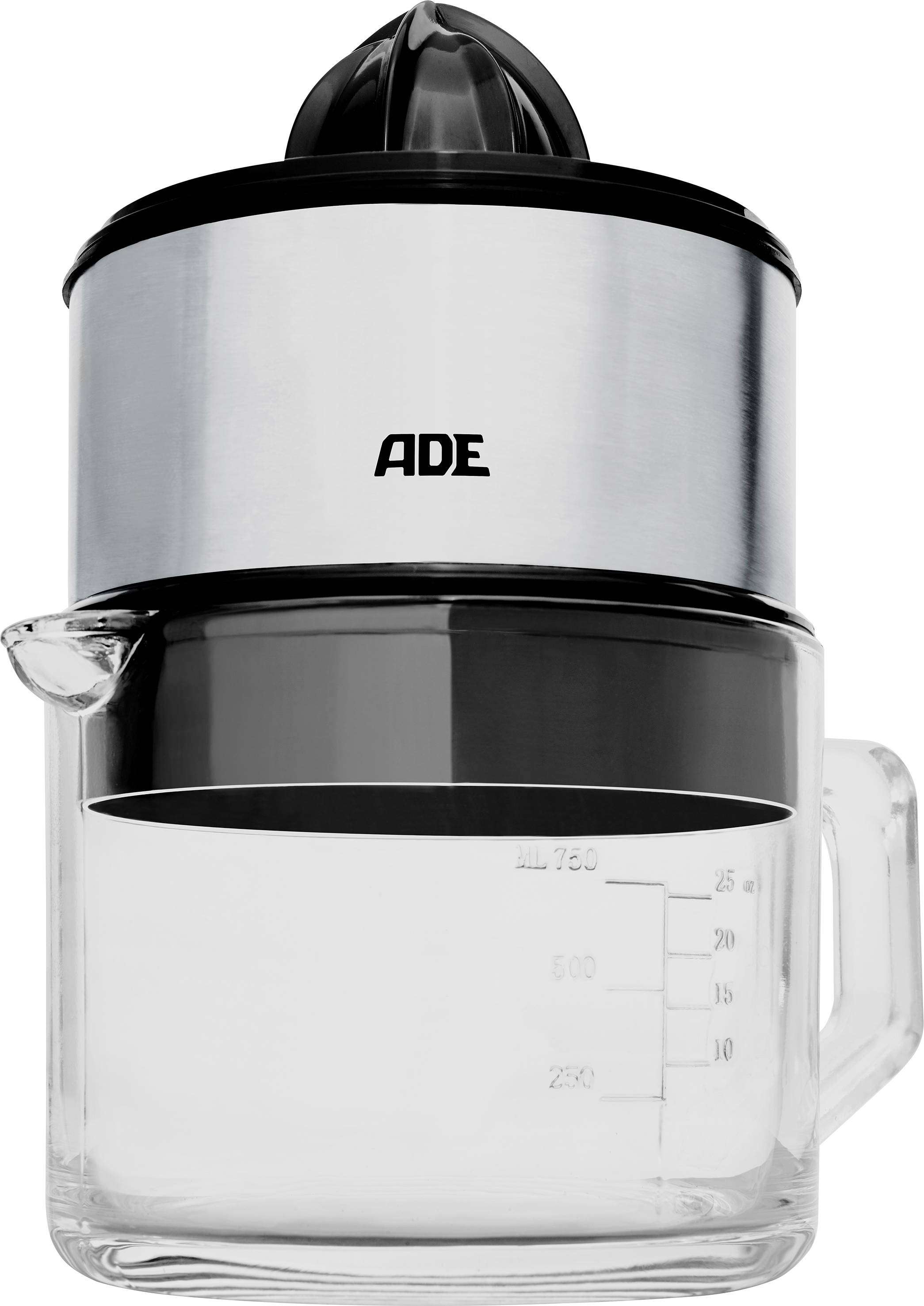ADE Zitruspresse 60 W inkl. hochwertiger Glaskaraffe, Start-Stopp-Automatik, BPA-frei Edelstahl, Schwarz