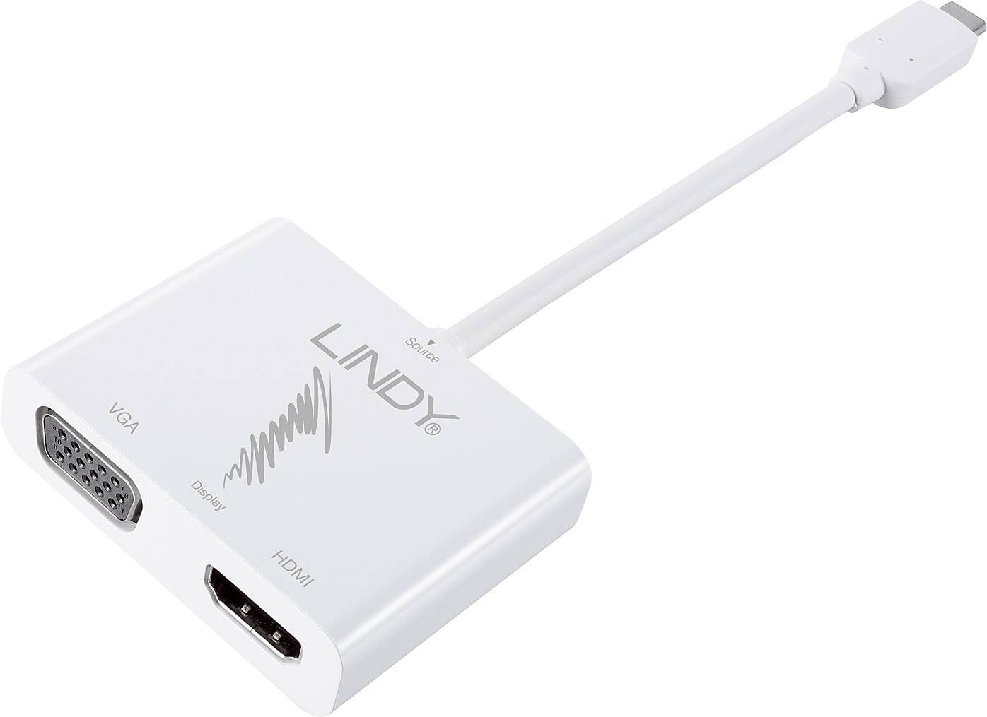 LINDY 43179 USB-C® / DisplayPort Konverter [1x USB-C® Stecker - 2x HDMI-Buchse, VGA-Buchse] Weiß