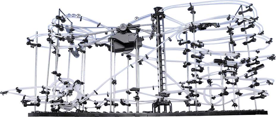 Wer denkt, dass Kugelbahnen nur etwas für Kinder sind, der wird hier eines Besseren belehrt. Denn Star Coaster ist eine geniale, spektakuläre Kugel-Achterbahn mit aberwitzigen Abfahrten über atemberaubende Steilstrecken, durch Loopings und rasante Kurven. Eine krasse Herausforderung für jugendliche und erwachsene Tüftelfans, deren Herzen hier garantiert höher schlagen. In verschiedenen Levels mit unterschiedlichen Größen und Schwierigkeitsgraden erhältlich. Das ausgeklügelte System besteht aus jeweils 1 Bodenplatte, auf der aus Metallelementen, flexiblen Plastikrohren, Weichen, Wippen und Dreharmen eine anspruchsvolle Kugelbahn konstruiert wird, auf der die mitgelieferten Metallkugeln in atemberaubendem Tempo hinuntersausen. Anspruch, Größe und Komplexität der Kugelbahnen steigen dabei mit jedem Level. Der absolute Clou: Nach einer rasanten Abfahrt landet die Kugel im batteriebetriebenen Fahrstuhl, der die Kugeln wieder nach oben in ihre Startpositionen bringt - und schon kann die nächste Abfahrt beginnen. Bereits der Aufbau ist Herausforderung und Riesenspaß zugleich: Er kann - je nach Level - von mehreren Stunden bis zu mehreren Tagen dauern. Für Level 9 empfehlen wir einen akademischen Abschluss - möglichst mit Doktortitel! Inklusive ausführlicher und bebilderter Aufbauanleitung in deutscher und englischer Sprache.