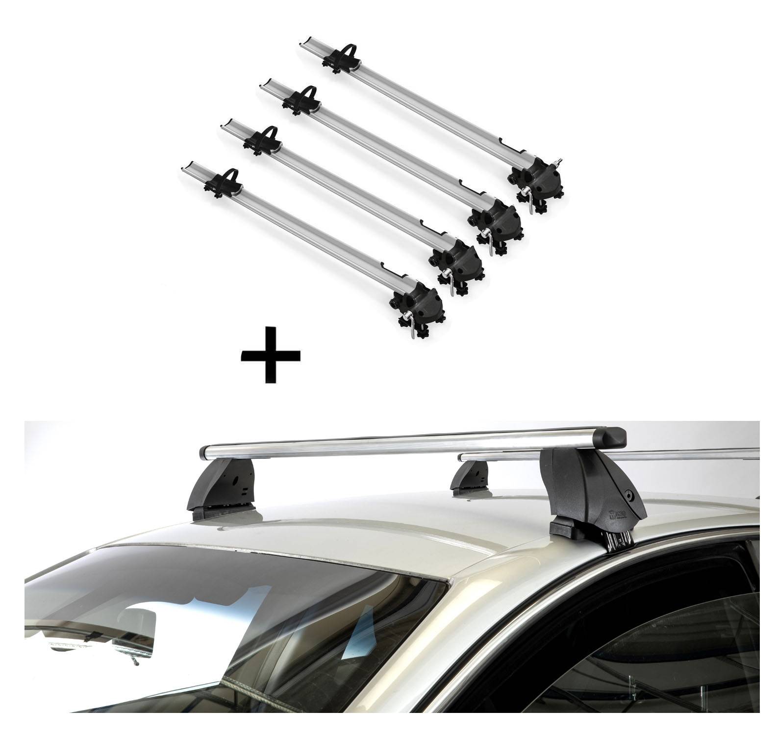 4xFahrradträger Bike Pro + Dachträger K1 PRO Aluminium kompatibel mit Audi S3 (8VS) Sedan (4Türer) ab 13