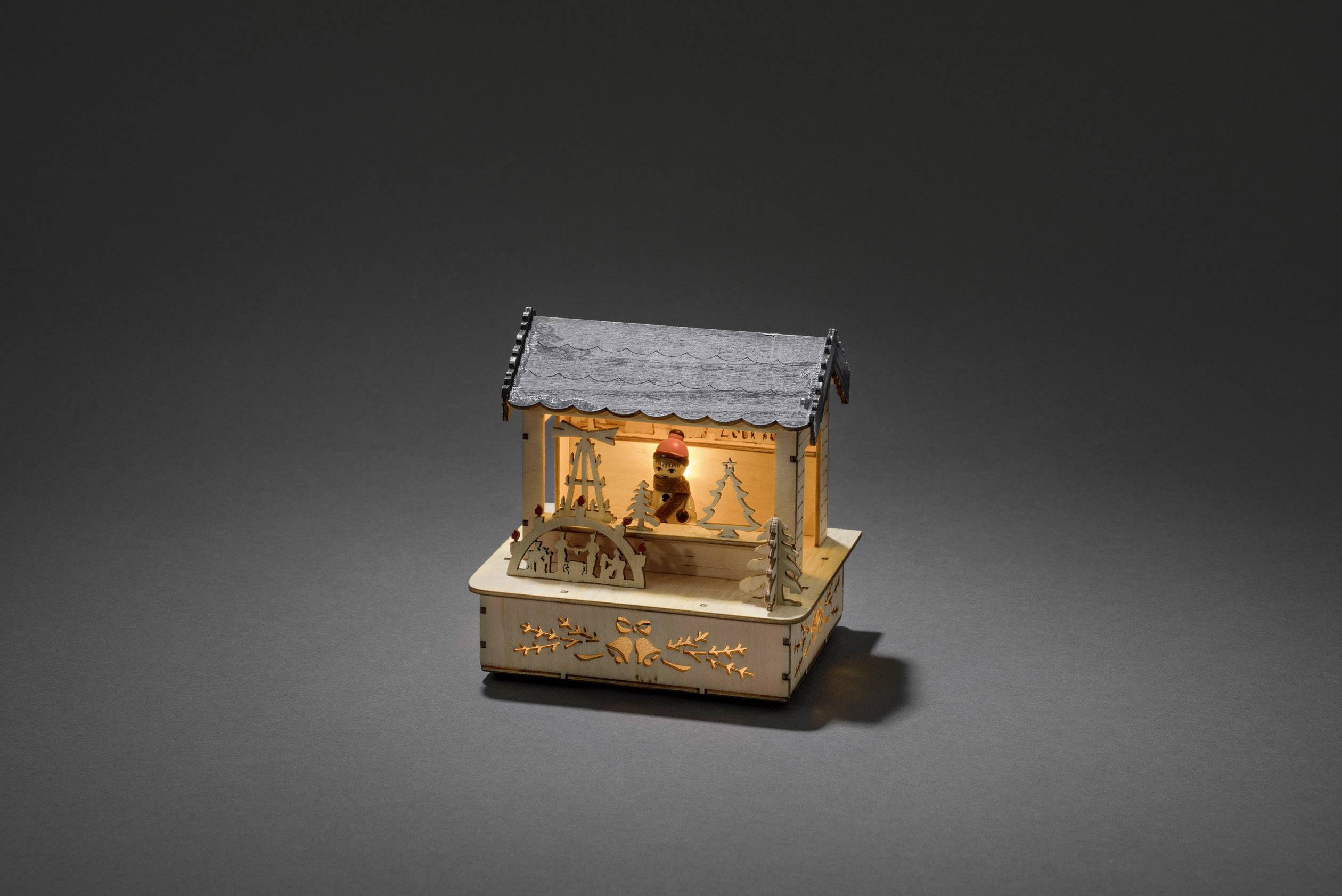 07318302823108, Konstsmide, 2823-100, LED Holzsilhouette Marktstand mit grauem Dach, Christmas, Weihnachtsfensterdeko, X-Mas, Weihnachts-Dekoration, LED-Weihnachtsdekoration, LED-Weihnachtsdeko, Fensterschmuck, Fensterdekoration, Weihnachtsdekoration, Fensterdeko, Fenster-Deko, >Fenster-Dekoration,