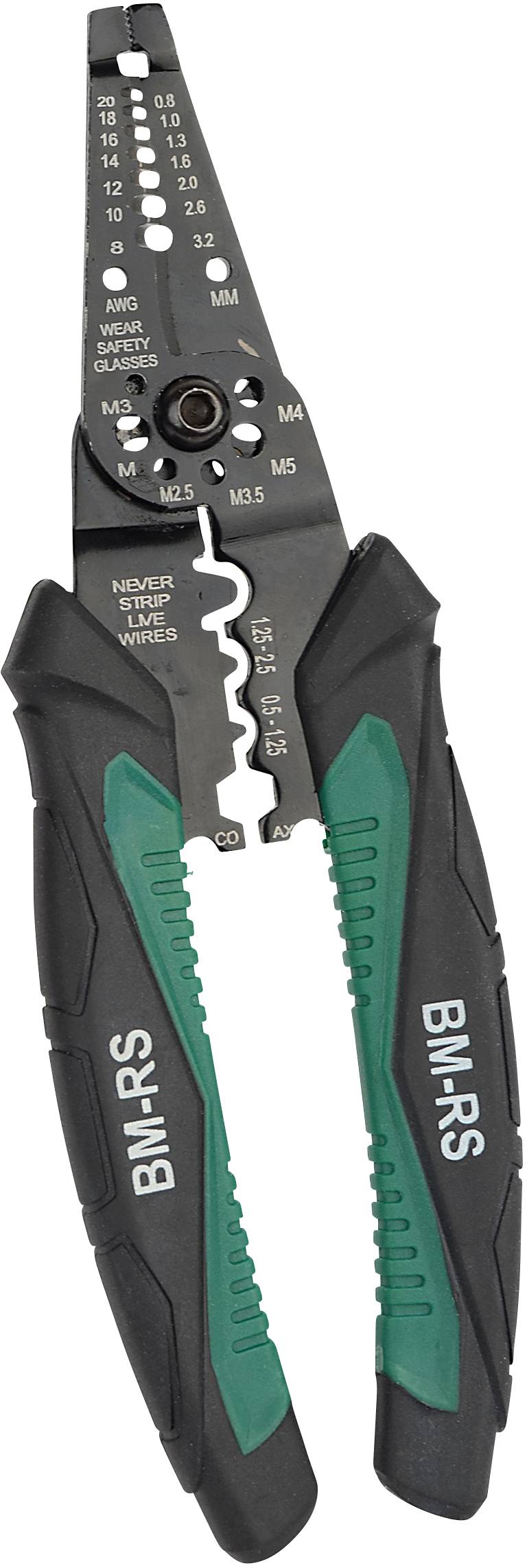 Abisolier- und Quetschzange mit 2 Komponenten Griffhüllen und Drahtabschneider zum kürzen von metrischen Gewindeschrauben M2,5-M5.