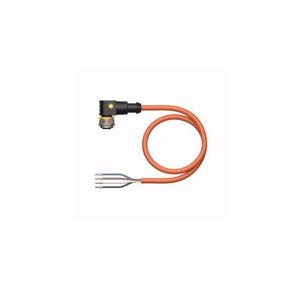 Aktuator- und Sensorleitung / PUR, Anschlussleitung, Leitungslänge3,5 m, M12-Kupplung, gewinkelt, 4-polig, mit 3fach LED (pnp, rot, gelb, grün), Mantelmaterial: PUR, Mantelfarbe: orange, Schleppkettentauglich, Schweißfunkenbeständig, Chemikalien-, UV- und ölbeständig, Flammwidrig (FT2 gemäß UL 1581, IEC 60332-2-2), Halogen-, silikon-, PVC- und LABS-frei, Besonders abriebfest, Schutzart: IP67, IP69K, Leitungslänge: 3.5 Meter