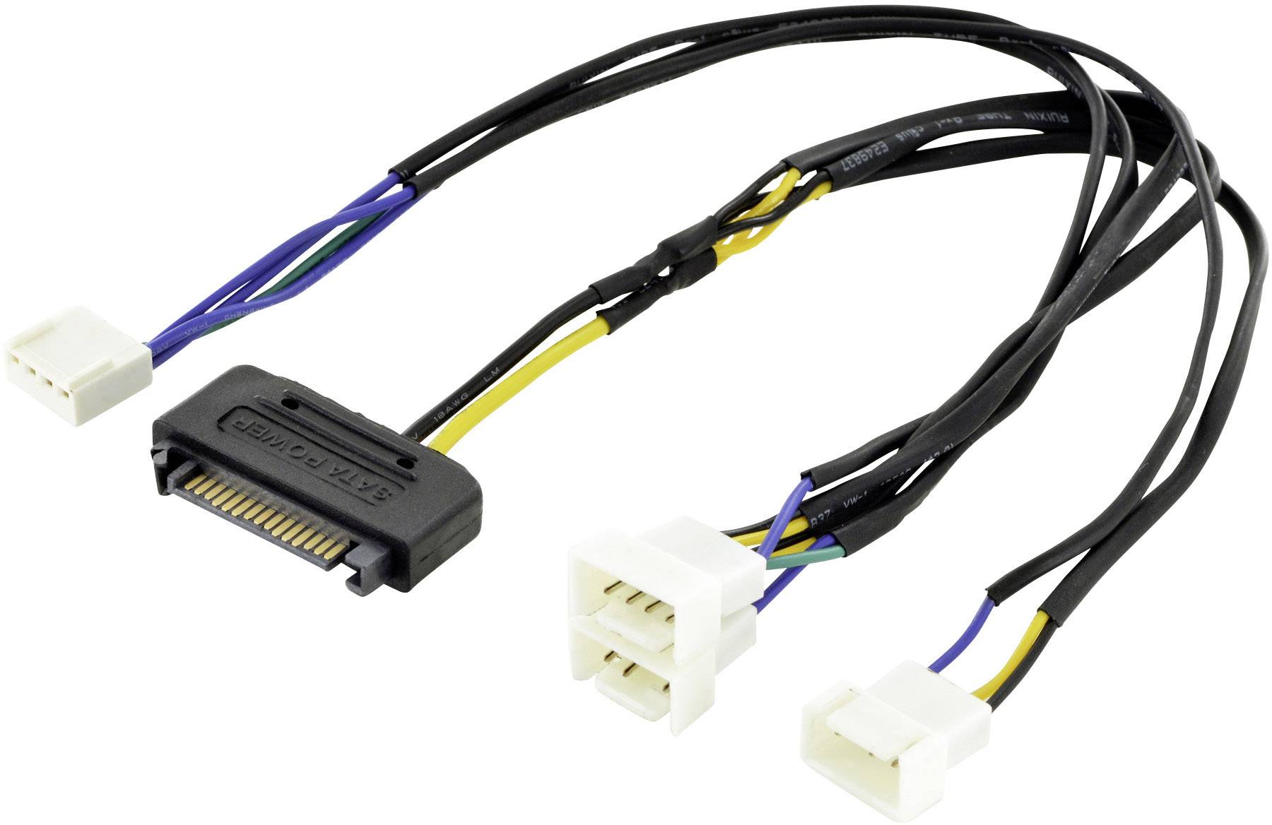 Mit diesem Kabel können Sie bis zu 3 PWM Lüfter an die Drehzahlregelung des Motherboards anschließen. Drehzahl und somit Gräuschkulisse aller angeschlossenen Lüfter, werden somit immer auf das optimale Niveau geregelt. Die Stromversorgung erfolgt über das PC-Netzteil mit Hilfe eines SATA 15-pin Anschlusses.