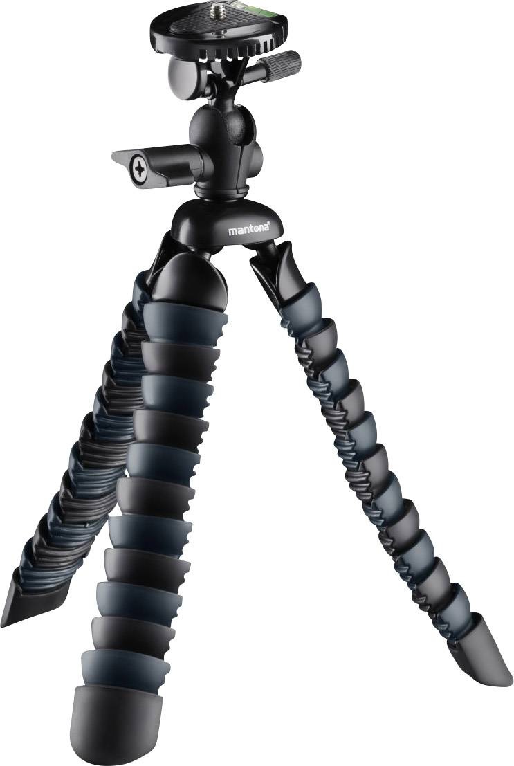 Mantona Armadillo Spezialstativ 1/4 Zoll Arbeitshöhe=12.5 - 28 cm Schwarz, Grau Für Smartphones und GoPro, Wasserwaage