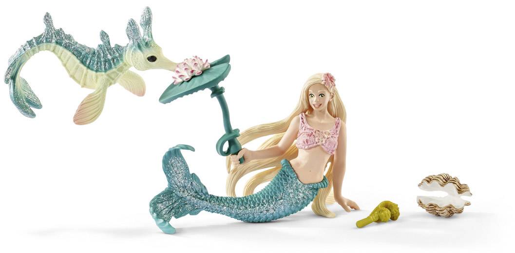 1 x Meerjungfrau + 1x Seerosen-Schirm + 1 x Seepferdchen + 1 x Riesenmuschel + 1 x Farn.