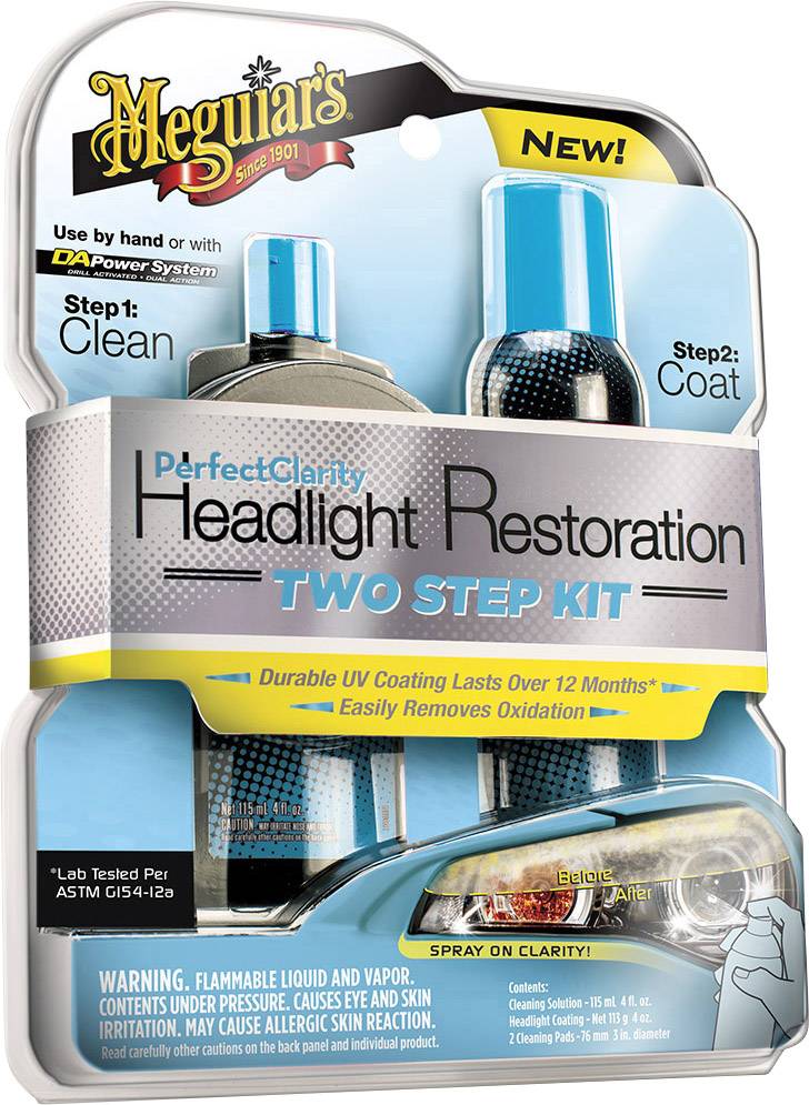 Meguiar's Perfect Clarity Headlight Restoration Kit stellt die Transparenz von stumpf gewordenen, vergilbten und oxidierten Scheinwerfern im Handumdrehen wieder her. Dank des urheberrechtlich geschützten Beschichtungsmittels von Meguiar's, wird das erneute Oxidieren bis zu einem Jahr lang verhindert!