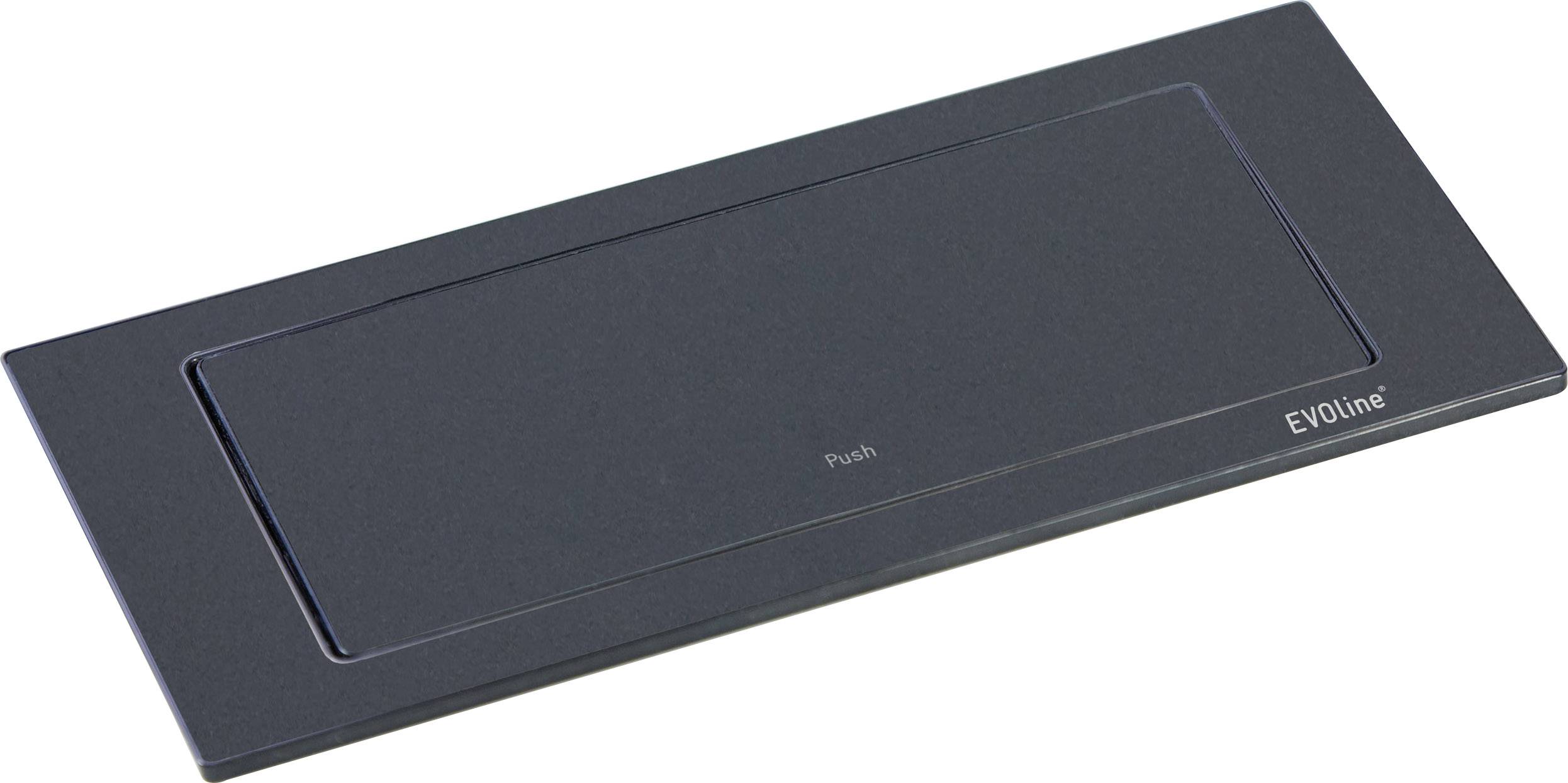 Immer verfügbar, aber nie im Weg. Geschlossen ist EVOline® BackFlip nur eine dünne Platte auf der Arbeitsfläche. Mit einem Finger angetippt dreht er sich um 180 Grad und zeigt seine nützliche Seite: USB-Charger und Steckdosen liegen so hoch über der Platte, dass sie vor seitlichen Einlaufen von Wasser geschützt sind. Die Einbautiefe beträgt dennoch nur 53 Millimeter, so dass auch eine Montage über Schubladen oder Geräten möglich ist.