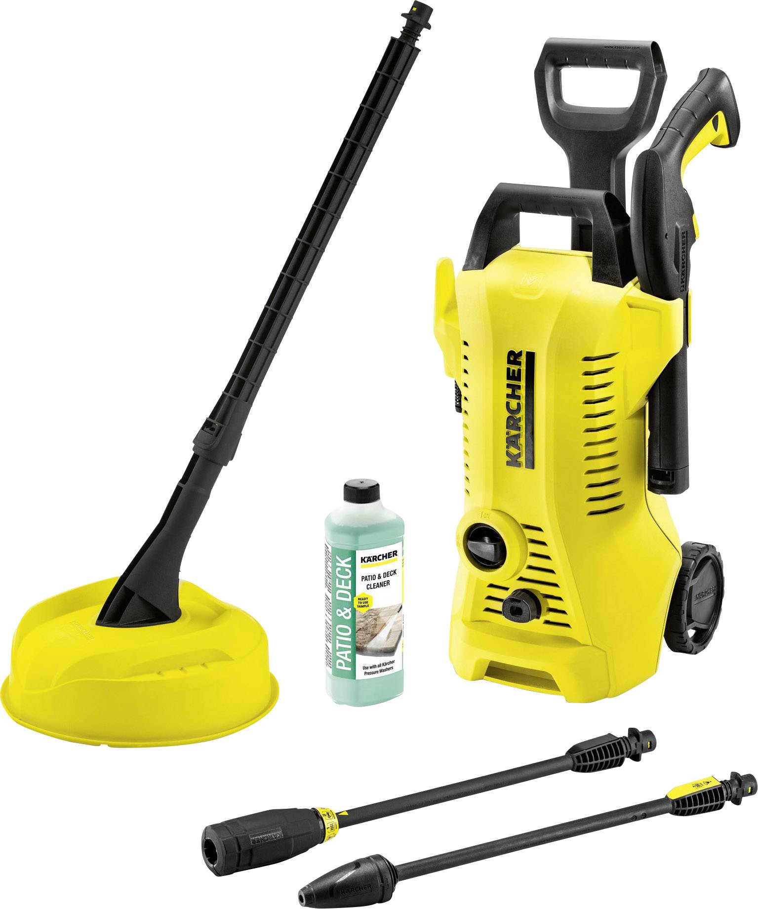 Hochdruckreiniger K 2 Full Control Home + Hochdruckpistole, G 120 Q + Home Kit + Dreckfräser + Flächenreiniger T 150 + Reinigungsmittel Patio & Deck, 0,5l + HD-Schlauch, 4 m + Adapter Gartenschlauchanschluss A3/4" + Bedienungsanleitung.