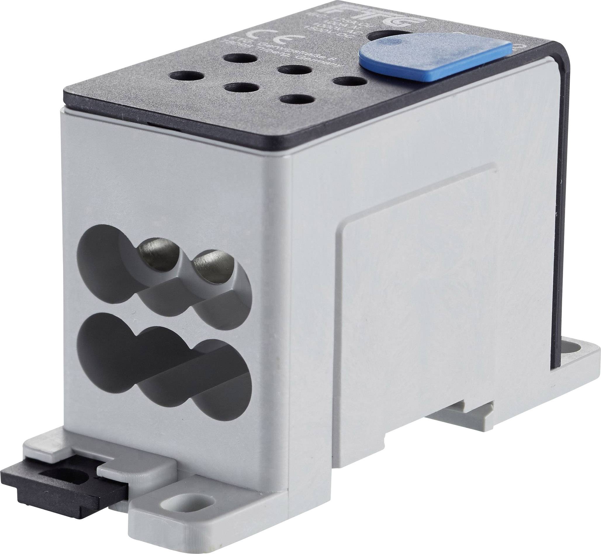 1 x 2,5 mm-50mm² · 6 x 2,5-25 mm² · Inkl. Markierungsplatten · Montage auf Hutschiene und Montageplatte · Zeitersparnis bei der Verkabelung · Ca. 80% Platzersparnis · Modularer Aufbau, mit mehreren Blöcken können 1 - 4 polige Systeme aufgebaut werden · Sichere Befestigung auf DIN-Schiene durch Rastschieber · einfache Anreihbarkeit durch Verbindungsclip · auswechselbare Markierungen für N, PE, DC+ etc.