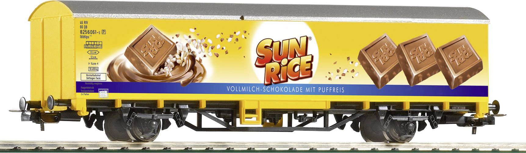 Farbvariante des Güterwagens mit attraktiver Werbung Sunrice in der Ep. VI.