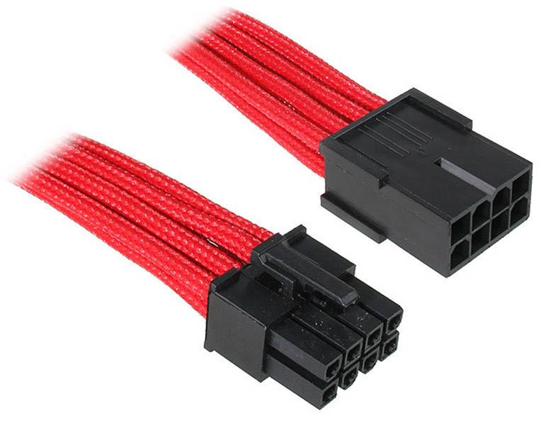 Hierbei handelt es sich um ein 8-Pin EPS12V Verlängerungskabel mit Sleeves und schwarzen Steckern. Es verbindet entsprechend einen 8-Pin Stecker mit einer 8-Pin Buchse. Diese sind kompatibel zu kombinierten 4+4-Pin EPS12V/ATX12V Anschlüssen, jedoch nicht zu 6+2-Pin / 8-Pin PCIe.