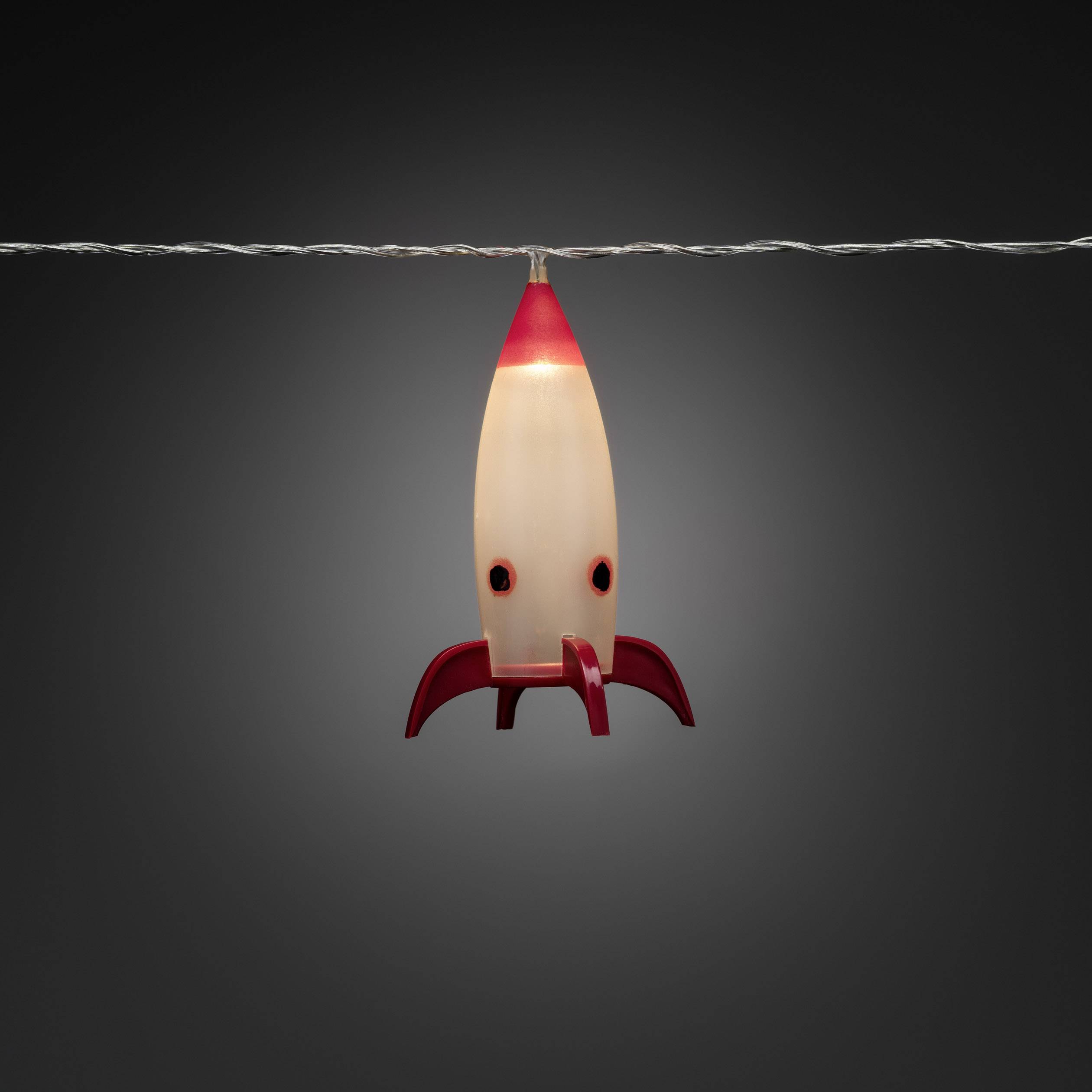 Raketen mit An/Aus Schalter · Maße: B: 8 cm H: 11cm · 8 Warm Weiße Dioden · 24 V Innentrafo · Transparentes Kabel.