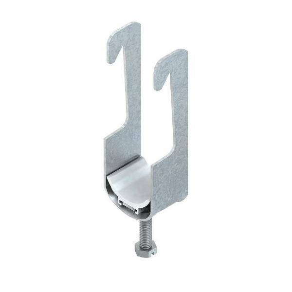 Bügelschelle, für Winkeleisen, mit Kunststoffdruckwanne aus PP, halogenfrei, Wanneneinlage bandverzinkt nach DIN EN 10346, Bügel tauchfeuerverzinkt nach DIN EN ISO 1461, Verwendung auch an ungleichschenkligem Winkelstahl sowie U-Eisen mit max. einer Schenkellänge von 40 mm, Gegenwannen (GWU/GWS...) müssen gesondert bestellt werden. Belegung : 1 Kabel für Kabel-Ø : 22 - 30 mm WinkeleisenAbmessungen H x B x t : 40 x 40 x 4-6 mm