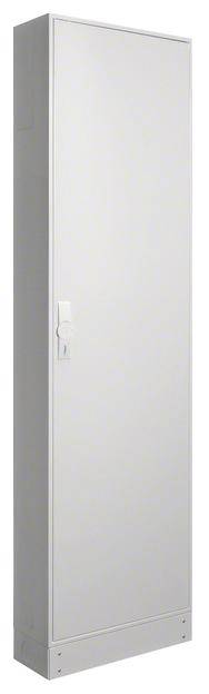 Schrank, univers, IP44/II, 1950x550x205mm, leer. Einzelstandverteiler für die Innenraummontage mit VDE-Gutachten (Fertigungsüberwachung) nach DIN EN 61439-1/-2/-3 und Maßnorm DIN 43870. Zum Aufbau einer Niederspannungsverteilung bis 400 A, 3AC 230/400 V 50 Hz. Schutzart IP44, Schutzklasse II, Luft- und Kriechstrecken nach DIN VDE 0110-1/-2. Bestehend aus Schrank mit Tür aus pulverbeschichtetem, eingebranntem, stabil profiliertem 1 mm dickem Stahlblech, Innenauskleidung aus Kunststoff. Durchsteckflansche oben eingebaut und unten offen, rückseitige Vorprägung im Kunststoffteil und Sammelschienendurchführungen als beidseitige seitliche Vorprägung im unteren Bereich. Waagerechte Abfangschiene zur Stabilisierung im Schrank enthalten. Tür frontbündig mit innenliegenden, justierbaren Scharnieren, wahlweise rechts oder links anschlagbar mit 110 Grad Öffnungswinkel. Tür mit Stangenverschluß mit Dreipunktschließung. Sockelleiste (Höhe 100 mm) serienmäßig montiert mit abnehmbarer Frontblende. Hinweis: Wand- und Bodenbefestigung notwendig! Türverschluß durch andere Schließungen austauschbar. Schrank nebeneinander anflanschbar.