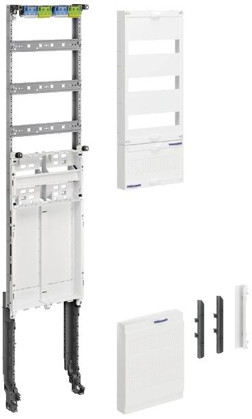Einbausatz, eHZ, Höhe 1200mm, 1-feldig, für Sammelschienen,. Komplettfeld / Einbausatz univers Z für eHZ zum Aufbau von Zählerplätzen nach DIN 43870, Schnellmontage im Schrank durch Rast-System, bestückt und verdrahtet nach VNB TAB-Bestimmungen für eHZ-Zählerplätze nach DIN VDE 603-1 (VDE 0603-1). Oberer Anschlussraum: 1-reihig Höhe 150 mm mit einer Hutschiene, 2-reihig Höhe 300 mm mit zwei Hutschienen, bestückt mit Hauptleitungsabzweigklemmen 3-/4- oder 5-polig, fingersicher nach BGVA3 oder bestückt mit __________ __________ ___________ -Zählerfelder mit integrierter Befestigungs- und Kontaktiereinrichtung (BKE-I) für eHZ, zum Einbau gemäß DIN 43870, eHZ-Zählertragplatte mit integriertem Zusatzraum (für Kommunikations- und Steuergeräte). Zusatzaum: 1-feldig, Höhe 150 mm, mit Abdeckung geschlossen, Vorprägungen für 12 PLE, plombierbar, mit Hutschiene 12 PLE, Öffnungen für Leitungsführung. Unterer Anschlussraum: Höhe 300 mm bestückt mit Hutschiene oder CU-Sammelschienen, 12 x 5 mm, 4-polig / 5-polig oder bestückt mit ____________ _________ ___________.