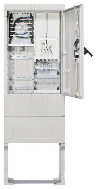 Zähleranschlusssäule 175, universZ, 1 Zählerplatz, 3-Punkt, 5-polig, Basis. Zähleranschlusssäule, Schutzart IP 44, als Basissäule inklusiv Eingrabsockel, aus glasfaserverstärktes Polyester FS 833.5 nach DIN EN 14598. Die Zähleranschlusssäule erfüllt die Anforderungen der DIN VDE 0603-1 (VDE 0603-1):2017-06 in Verbindung mit der DIN VDE 0603-2-1 (VDE 0603-2-1):2017-06. Weiterhin ist die Anlage basierend auf den geltenden Anwendungsrichtlinien der VDE-AR-N 4100:2019-04 inkl. der zugehörigen Berichtigung VDE-AR-N 4100 Ber 1:2019 aufgebaut. Durch Zusatzbauteile wird die Basissäule zu einer anschlussfertigen Zähleranschlusssäule des entsprechenden VNB ausgebaut. Profiliertes Gehäuse im Rippendesign. Tür mit Öffnungswinkel 180 Grad bei freiem Stand und 90 Grad bei angereihten Gehäusen. Rechte Tür ist aushängbar. Schließung mit Schwenkhebel und Drei-Punkt-Basküleverschluss mit 1 bzw. 2 Profilhalbzylindern. Eingebauter Zylinder unten mit gleichschließender Serie. Ein zweiter Schließzylinder (z.B. aus VNB-Schließanlage) kann oben nach Entfernen des Vierkantverschlusses eingebaut werden. Wenn kein zweiter Profilhalbzylinder eingebaut wird, muss die zweite obere Öffnung mit einem Blindverschluss bestückt werden. Die Belüftung erfolgt über labyrinthartig ausgebildete Lüftungskanäle, verhindert das Eindringen von Fremdkörpern und ist stochersicher. Zähleranschlusssäulen sind gebaut nach technischer Richtlinie: Anschlussschränke im Freien/Anschluss von ortsfesten Schalt- und Steuerschränken und Zähleranschlusssäulen an das Niederspannungsnetz des VNB. Der Einbau besteht aus schutzisolierten Zählerfeldern DIN 43870 (Funktionsflächen) für Zähler. Zählerplätze sind vorgerichtet für eine IP54 Abdeckung. Eingrabsockel und Zähleranschlusssäule bilden eine Einheit. Ein Bodenrost ist empfohlen. Zur Betauungsvermeidung ist der Sockel bis zur Höhe der Kabelbefestigungsschiene innen mit Sockelfüller aufzufüllen.