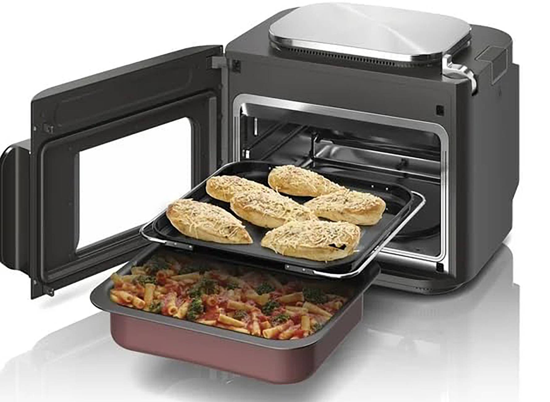 Tauchen Sie ein in die Welt des Ninja SFP700DE Combi und erleben Sie ultimative Vielseitigkeit in Ihrer Küche! Mit 12 verschiedenen Kochfunktionen ist dieses Gerät der Traum eines jeden Hobbykochs. Von Combi Crisp über Heißluftfrittieren bis hin zu Slow Cooking - die Möglichkeiten sind endlos. Dank des großzügigen 12,5-Liter-Fassungsvermögens können Sie problemlos köstliche Mahlzeiten für die ganze Familie zubereiten. Vergessen Sie den Platzmangel in Ihrer Küche, denn der Ninja SFP700DE Combi ersetzt gleich mehrere Küchengeräte und spart somit wertvollen Stauraum. Die leicht zugängliche Tür mit Sichtfenster ermöglicht es Ihnen, Ihre Kreationen beim Garen im Auge zu behalten. Holen Sie sich noch heute den Ninja SFP700DE Combi und entdecken Sie eine neue Welt des Kochens!