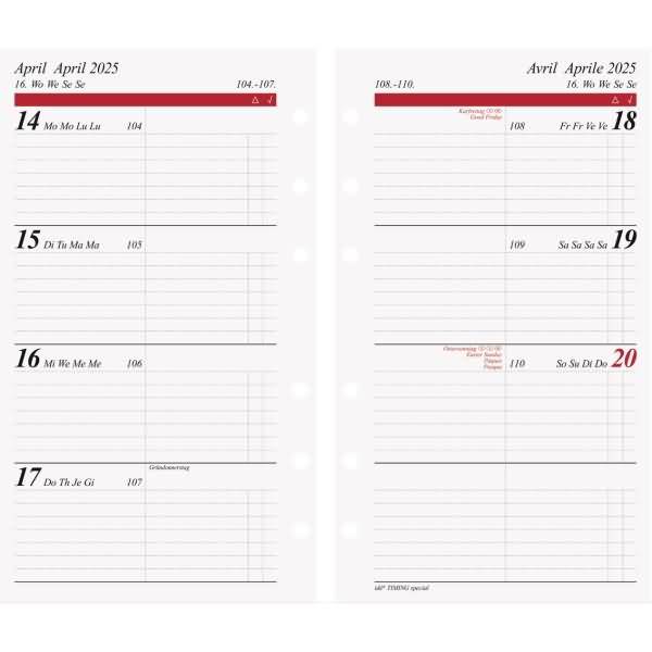 Wochenkalendarium Timing Special 8,7x15,3cm 1 Woche/2 Seiten 2025