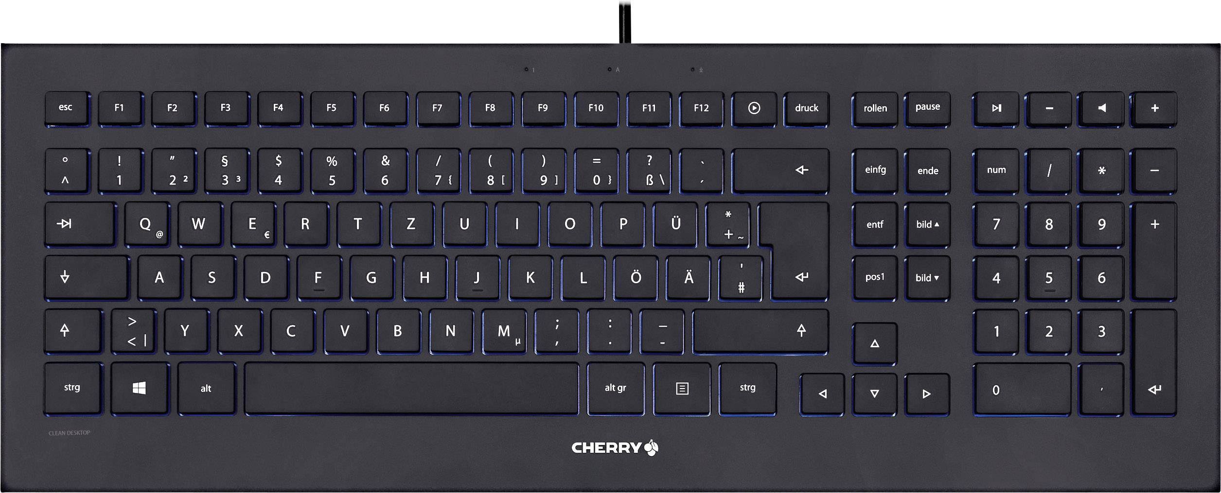 Cherry Strait 3.0 USB Tastatur Deutsch, QWERTZ, Windows® Schwarz Spritzwassergeschützt