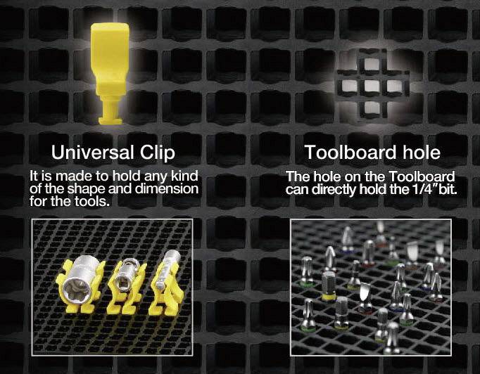 1x kleine Lochplattenwand + 6x 50 mm Plastikhaken + 6x Universal-Clip