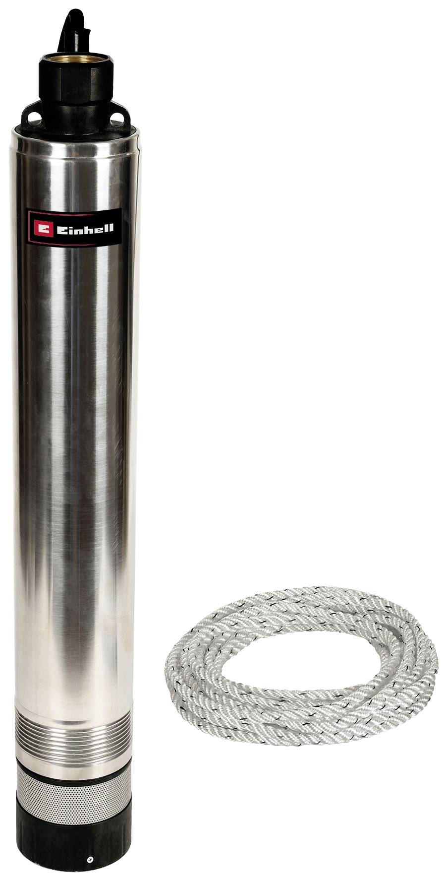 Die Einhell Tiefbrunnenpumpe GC-DW 1045 N ist eine robuste Basispumpe zur Förderung von Klarwasser für Gärten oder Brauchwasser im Haushalt und auch geeignet für den Aufbau einer Rasensprinkleranlage und großflächigen Gartenbewässerungssystemen. Die schlanke Tiefbrunnenpumpe ist für Brunnen, Reservoirs sowie Zisternen ideal geeignet. Bis zu 19 Meter in die Tiefe kann die Pumpe von Einhell mit dem mitgelieferten Seil abgelassen werden, an zwei Aufhängeösen kann sie fest und sicher fixiert werden. Mit dem starken 1000 Watt-Motor fördert die Tauchpumpe bis zu 6500 Liter Wasser pro Stunde. Ein mehrstufiges Pumpenrad liefert den gleichmäßigen Druck. Das integrierte Rückschlagventil verhindert das Zurückfließen beim Ausschalten. Die hochwertigen Materialien und die Einzelkomponenten aus rostfreiem Edelstahl gewähren eine lange Lebensdauer: Das Pumpengehäuse besteht aus rostfreiem Edelstahl und der robuste Druckanschluss ist mit einem Edelstahl-Einsatz ausgestattet. Auch das Schmutzsieb besteht aus Edelstahl. Die hochwertige Gleitringdichtung sorgt für eine lange Lebensdauer. Ein thermischer Überlastschutz schützt das Gerät bei einer Überlastung und schaltet in einem solchen Fall automatisch ab. Der Schlauchanschluss ist gut erreichbar an der Pumpenoberseite integriert.