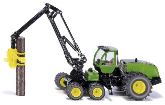 Ein gewaltiges Fahrzeug zur Baumfällung ist der John Deere Harvester. Der flexibel drehbare Arm hilft beim sicheren Greifen der Baumstämme. 6-Räder mit Reifen aus gummiertem Material und grobstolligem Profil sorgen für sicheren Stand, während die drehbare Kabine dem Fahrer jederzeit die optimale Sichtposition bietet.