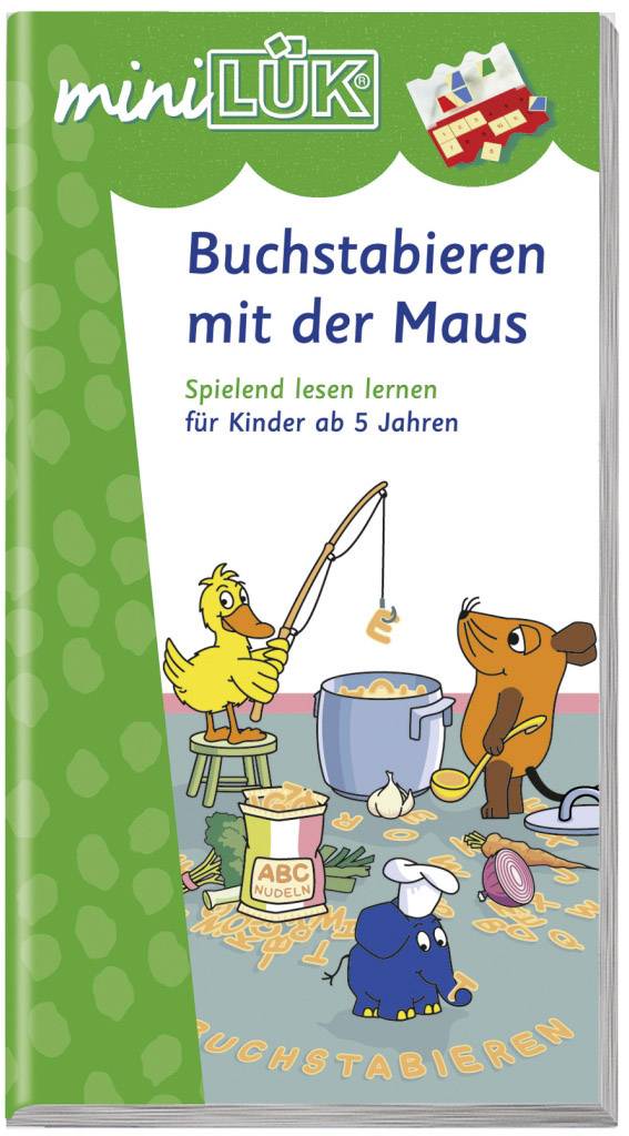 Spielend lesen lernen für Kinder ab 5 Jahren. Schritt für Schritt erfahren Kinder, wie Wörter entstehen und sich über Wort-Bild-Verknüpfungen der Zugang zur Schriftsprache öffnet. Das ist ein spannendes Abenteuer, bei dem die Kinder von der beliebten Maus mit ihren beiden Freunden fröhlich und unterstützend begleitet werden. Der bunte Aufgabenreigen dieses Heftes: aus einzelnen Buchstaben Wörter bilden, Buchstaben wiedererkennen, Wortlücken schließen, Silben sinnvoll verbinden, versteckte Wörter finden. Zur Bearbeitung dieses Übungsheftes benötigen Sie das miniLÜK-Lösungsgerät. Von 5 bis 6 Jahren.