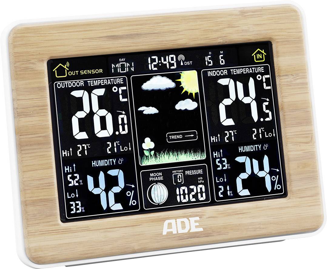 Innen- und Außentemperaturanzeige (°C und °F ), Innen- und Außenhygrometer (20 – 95 %)