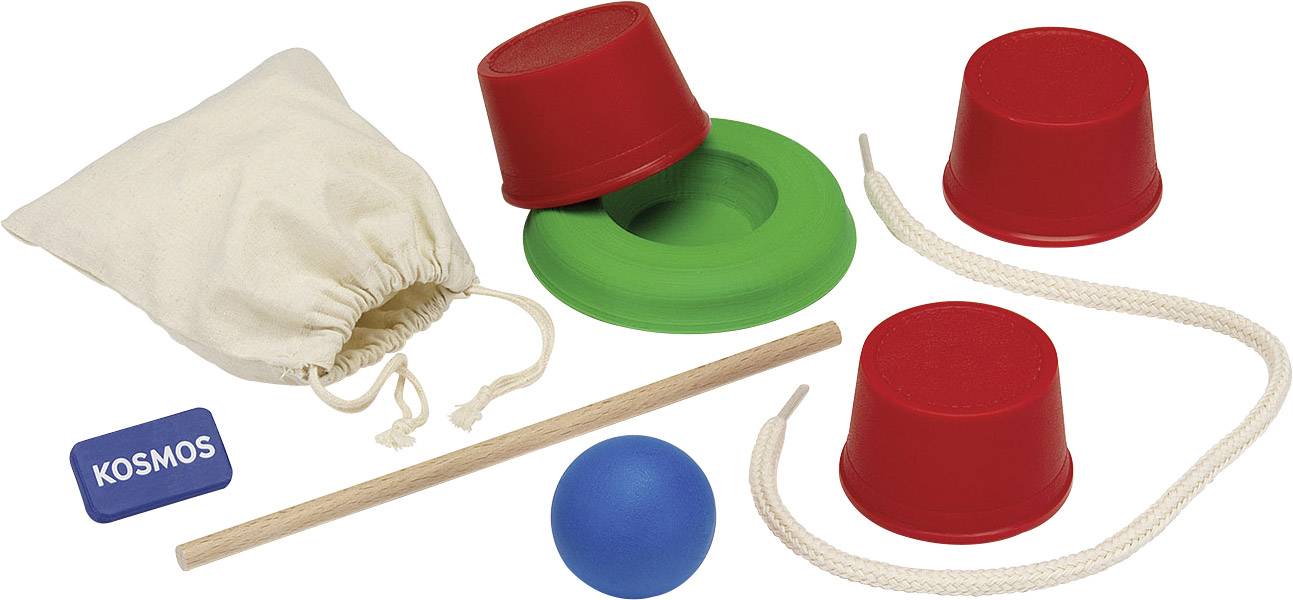 3 Becherstationen, 3 Becher, Ball, Seil, Hunde-Clicker, Target-Stick, Futterbeutel, Stickerbogen, Anleitung