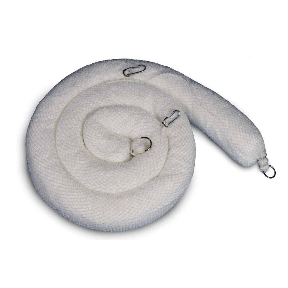 Einsatzbereich Die PIG® Essentials Oil-Only-Ölsperre ist zur langfristigen Verwendung auf Wasser geeignet. Sie wirkt als Eindämmungssystem, das groß genug ist, um Verschüttungen fast aller Größen zu beseitigen. Beschreibung Die PIG® Essentials Oil-Only-Ölsperre ist mit einer stark absorbierenden Füllung gefüllt und von einem reißfesten Nylon‐Netz umgeben. Die Sperre wird selbst dann nicht sinken, wenn sie vollständig mit Öl gesättigt ist. Die Füllung aus Polypropylen ist hydrophob. sie stößt Wasser ab (und schwimmt darauf), absorbiert jedoch Öle und sonstige Kohlenwasserstoffe. Die Leine aus Nylon und ihre reißfeste Ausführung sorgen für extra Festigkeit bei der Auslegung und Einziehung. Die Sperren sind mit Klammern und Verbindungsringen ausgestattet, wodurch die Ausleger einfach und effizient miteinander verbunden werden können. Die integrierten Verbindungsstücke können verwendet werden, um ein Eindämmungssystem zu erhalten, das groß genug ist, um Verschüttungen fast aller Größen zu beseitigen. Durch die weiße Farbe ist gleich zu sehen, wenn das Absorptionsmittel vollständig gesättigt ist. So wird die Ölsperre nicht vorzeitig weggeworfen und Geld gespart. Technische Daten Material Füllung und Haut - Polypropylen Material Netz - Polyester Material Hardware - Metall Recycling-Gehalt - 100% recycelter Polypropylen-Füllung Farbe - Weiß Absorptionsmenge - 113,6 oder 143,8 Liter / VE Durchmesser - 13 oder 20 cm Länge - 3 oder 6 m VE - 2 oder 4 Ausleger Preis per VE