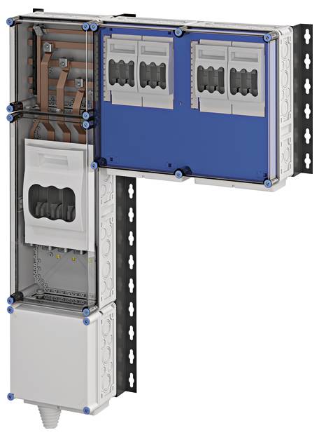 Wechselrichter-Sammler nach IEC 61439 für PV-Anlagen werden anschlussfertig geliefert. Die Gehäuse aus hochwertigem Thermoplast sind schutzisoliert, Schutzart IP 54. Wechselrichter-Sammler können um die Funktion Blitz- und Überspannungsschutz erweitert werden. Sie sind für die geschützte Installation im Freien geeignet und UV-beständig. PV-Wechselrichter-Sammler bis 220 kVA mit NH 00-Sicherungslasttrennschalter. Max. 4 x 3~ Wechselrichter. Wandbefestigung über Montageschienen aus verzinktem und pulverbeschichtetem Stahlblech.