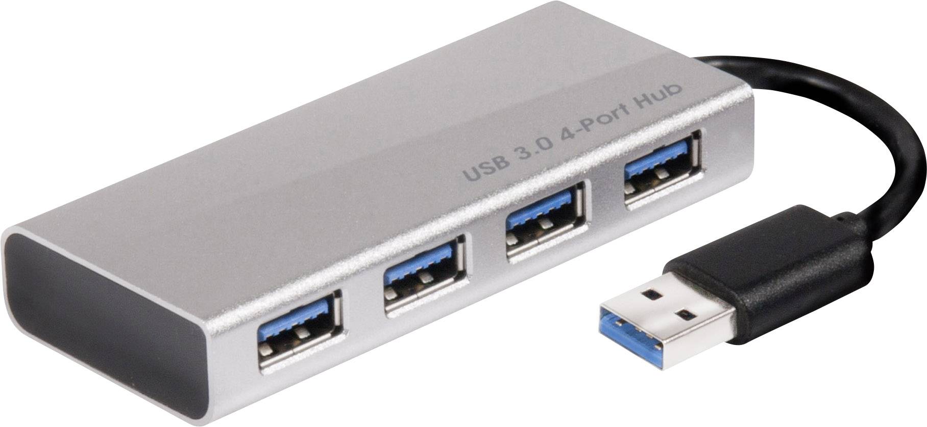club3D CSV-1431 4 Port USB 3.2 Gen 1-Hub (USB 3.0) mit Aluminiumgehäuse, mit Schnellladeport Aluminium (gebürstet)