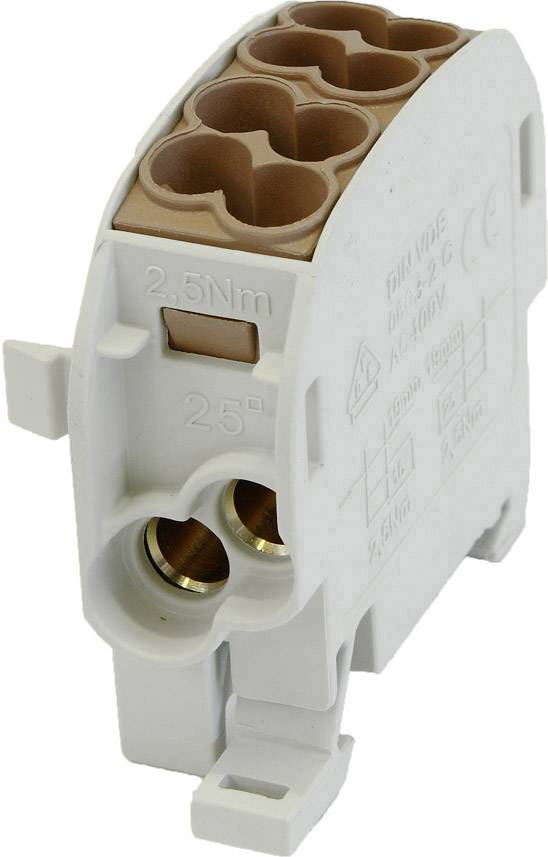 HoraeTec 106288 Hauptleitungsabzweigklemme PA, Messing Lichtgrau (RAL 7035), Braun 1polig 100A 690V Leiter-Typ = L