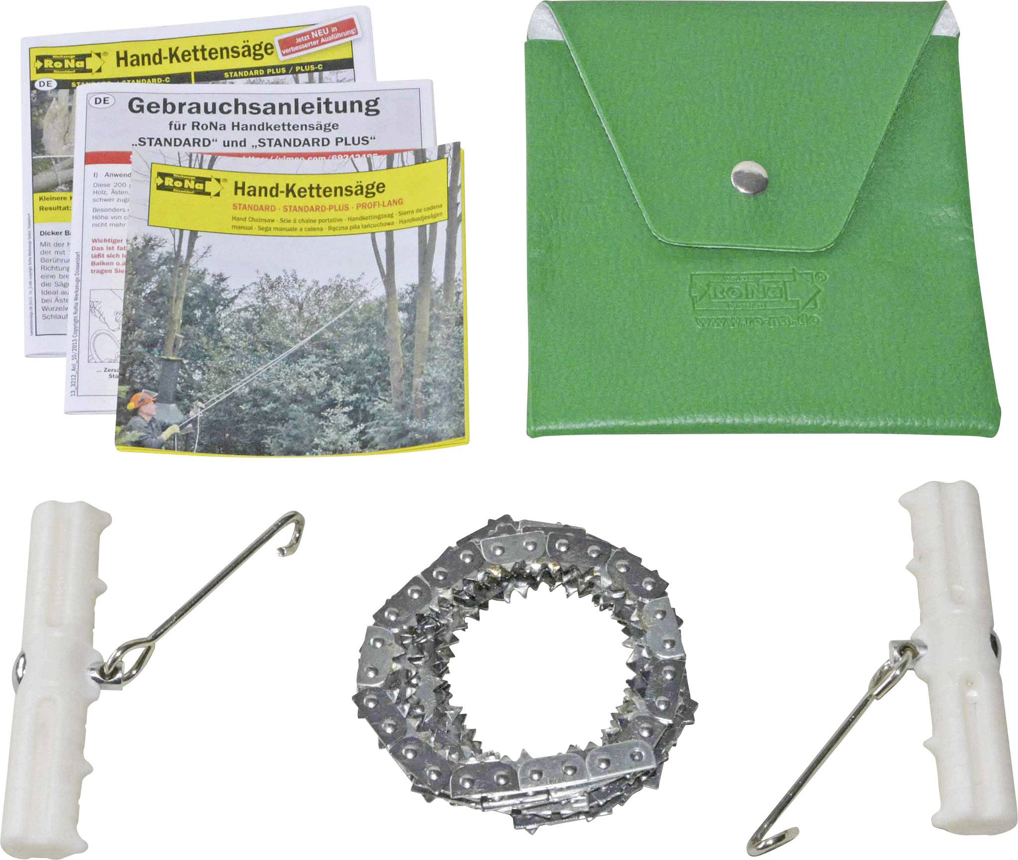 Breite Schränkung der Kette zieht und führt Sie immer in die richtige Lage · alle Schneiden gehärtet = 54° Rockwell HRC für gleichbleibende Schnittleistung und lange Lebensdauer · Kette hart-verchromt, in Sonderlänge = 1,30 m – 144 Glieder für geschmeidigeres Arbeiten keinen Rost · Zusammengelegt passt die Säge in die mitgelieferte Tasche, lässt sich leicht am Gürtel tragen und ist so stets schnell einsatzbereit.