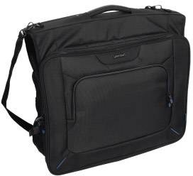 Klappbarer Kleidersack mit gepolstertem Schultertragegurt, Hängevorrichtung mit Haken,3 großen Reißverschlussfächern, welche sich über die komplette Vorderseite verteilen. Im Innenbereich: Vorrichtung zur Befestigung von mind. 4 Kleiderbügeln, ein Reißverschlussfach über die komplette Länge des Kleidersackes inkl. Koffergurt, 4 aufgesetzten Reißverschlusstaschen für kleinere Utensilien. Der zusammen geklappte Kleidersack kann mittels zwei Schnappverschlüssen fixiert werden.