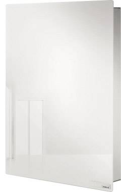 Ab sofort übernimmt der Schlüsselkasten VELIO den Schlüsseldienst. Die Fronttür ist eine Glasscheibe, die weiß hinterdruckt und mit einer magnetischen Edelstahlfläche hinterlegt wurde. Das heißt, optisch haben Sie eine sehr glänzende, weiße Glasoberfläche, praktisch auch noch eine Magnettafel. So können Sie mit den mitgelieferten extra starken Neodym Magneten Karten und Notizen anheften. Kleine und große Schlüsselbunde verschwinden im Inneren des Kastens. Die mit Gummi überzogenen Haken bieten Ihnen die Möglichkeit, auch größere Autoschlüssel unterzubringen. Die Glastür wird komfortabel mit einem innen angebrachten Magneten verschlossen. Eine kleine, mattierte Edelstahlplatte mit blomus Logo ist auf der Front angebracht. Diese ist nicht nur ein schönes Detail, sondern zeigt Ihnen auch, an welcher Seite der Schlüsselkasten zu öffnen ist.