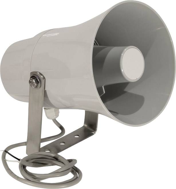 Druckkammerhorn-Lautsprecher mit sehr hohem mittleren Schalldruckpegel und breitem, ausgewogenen Übertragungsbereich. Dadurch wird eine hervorragende Sprachverständlichkeit gewährleistet. Leistungsanpassung im 100-V/70-V- bzw. 8-Ohm-Betrieb erfolgt über Drehschalter, der gegen versehentliches Umschalten oder Ausschalten geschützt ist. UV-beständiges, hellgraues Kunststoffgehäuse (ABS UL 94: HB). Schwenkbarer Edelstahlbügel (V2A/AISI 304) zur Befestigung an Decken, Wanden, Säulen usw.