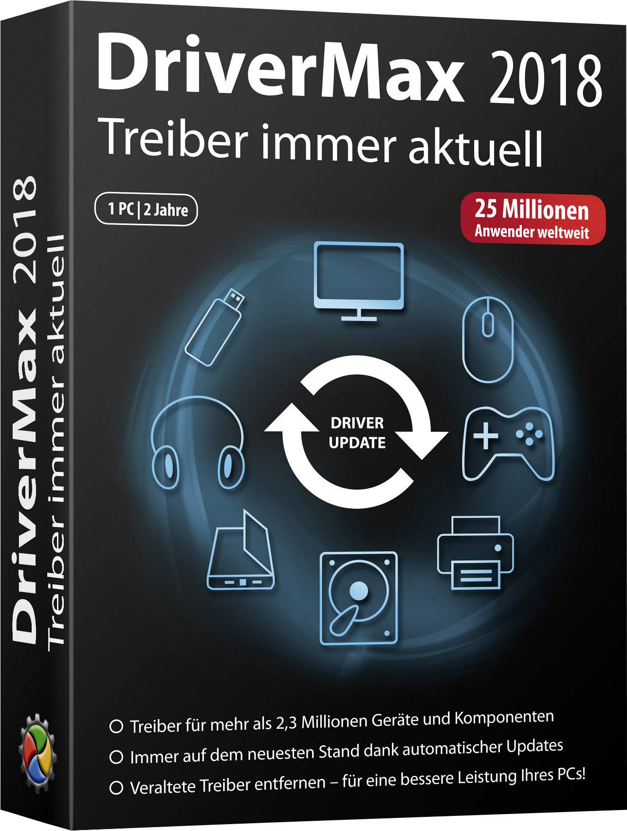 Treiber aktualisieren, speichern, verwalten und wiederherstellen · Probleme mit Treibern werden automatisch erkannt und behoben · Für mehr als 2,3 Millionen Geräte: Monitor, Tastatur, Maus, Kamera, Modem, Grafik-, Sound- und Netzwerkkarte, Drucker, Scanner, USB-Sticks u.v.m. · Schnelleres Arbeiten mit Windows aufgrund korrekt installierter System-Treiber.