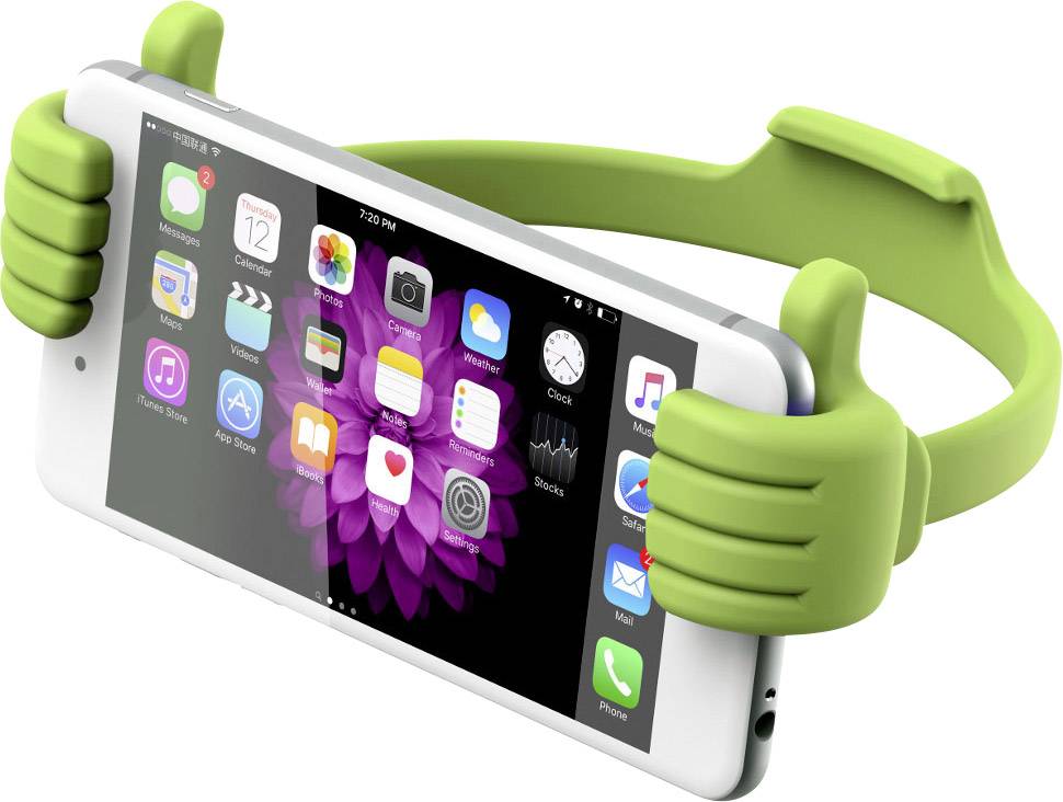 Diese farbenfrohe Halterung im verspielten, coolen Design, gibt ihrem Smartphone oder Tablet den nötigen Halt. Die praktische und einfache Befestigung Ihres Geräts in den flexiblen Händen der ""Thumbs Up""-Halterung, erlaubt das Aufstellen in vielen verschiedenen Positionen und Neigungswinkeln. Sie passt sich perfekt an die Größe Ihres Smartphone oder Tablets an. Nutzen Sie die variablen Einstellungsmöglichkeiten zum Anschauen von Videos, Abspielen Ihrer gespeicherten Fotos als Diashow oder zum Spielen Ihrer Lieblings-Games. ""Daumen hoch"" für diese witzige und fröhliche Halterung von XLayer.