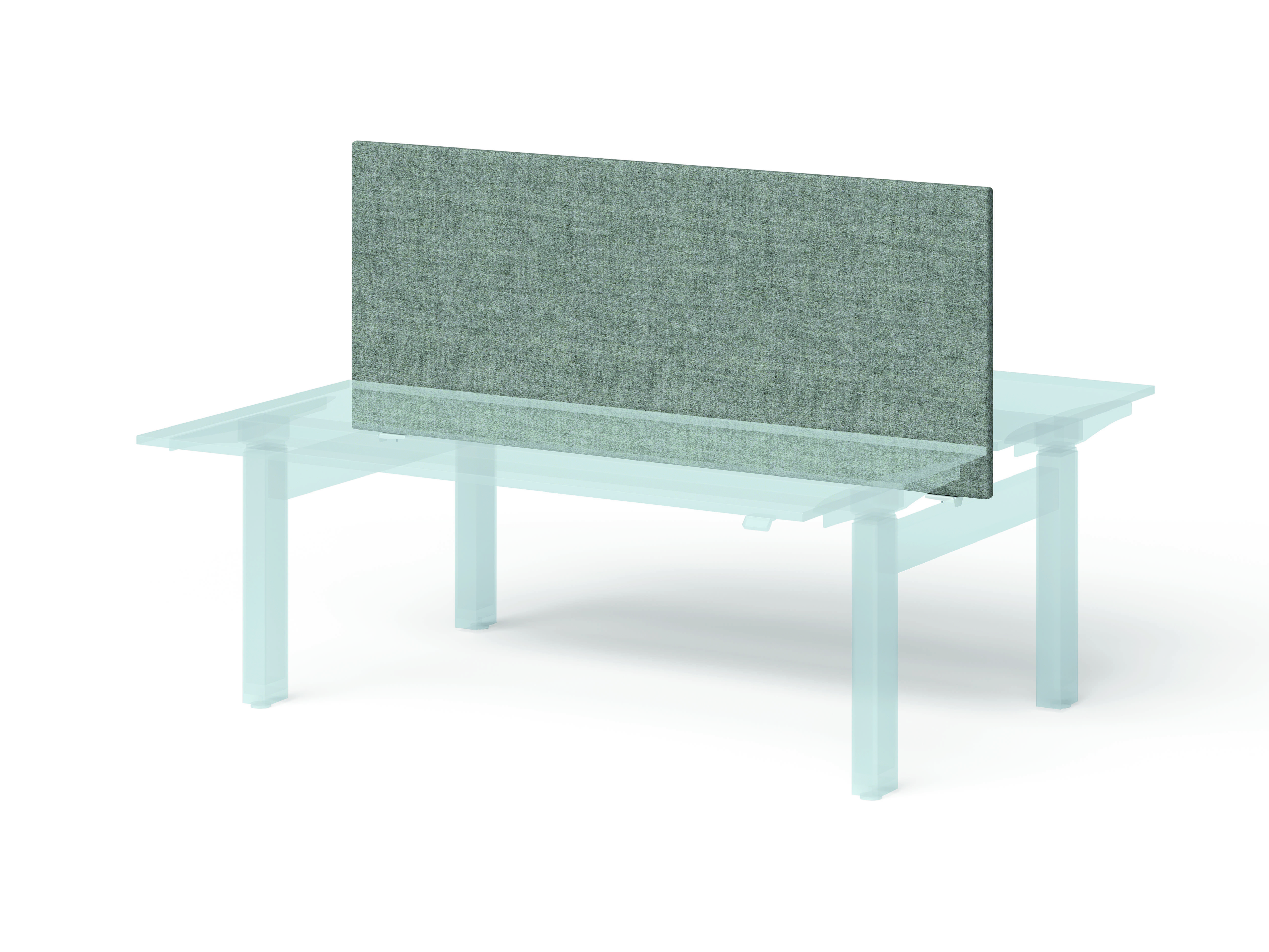 Der 650 mm hohe Akustik Screen wirkt durch seine 3 mm Schaumstoffkaschierung und den Stoffbezug Camira Lucia schallabschirmend.