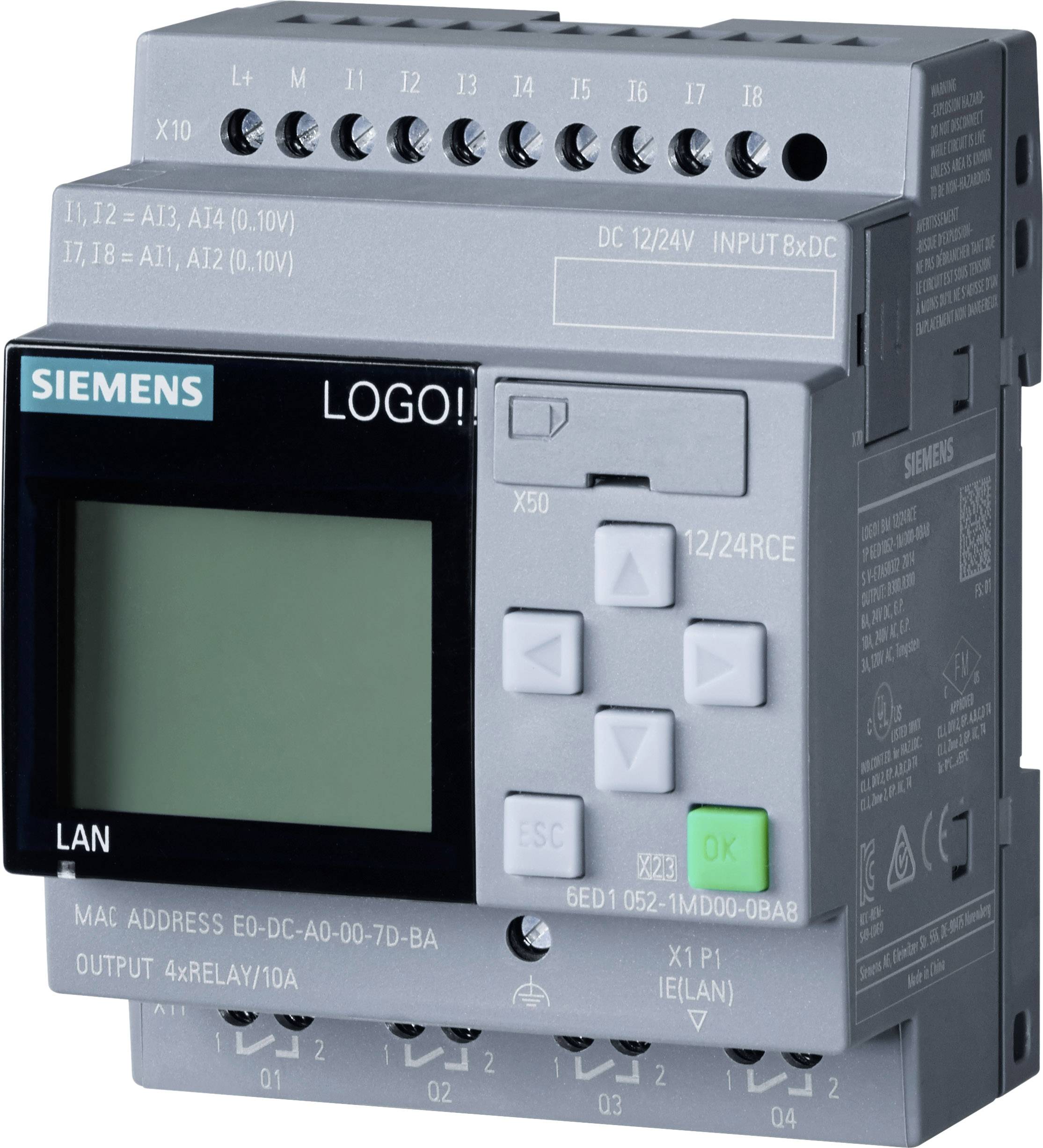 LOGO! 12/24RCE, Logikmod., Disp SV/E/A: 12/DC 24V/Relais, 8DE (4AE)/4DA, SP. 400 Blöcke, modular erweiterbar, Ethernet, integr. Web-Server, Datalog, benutzerdefinierte Web-Seiten, Standard microSD-Karte für LOGO! Soft Comfort ab V8, ältere Projekte ablauffähig