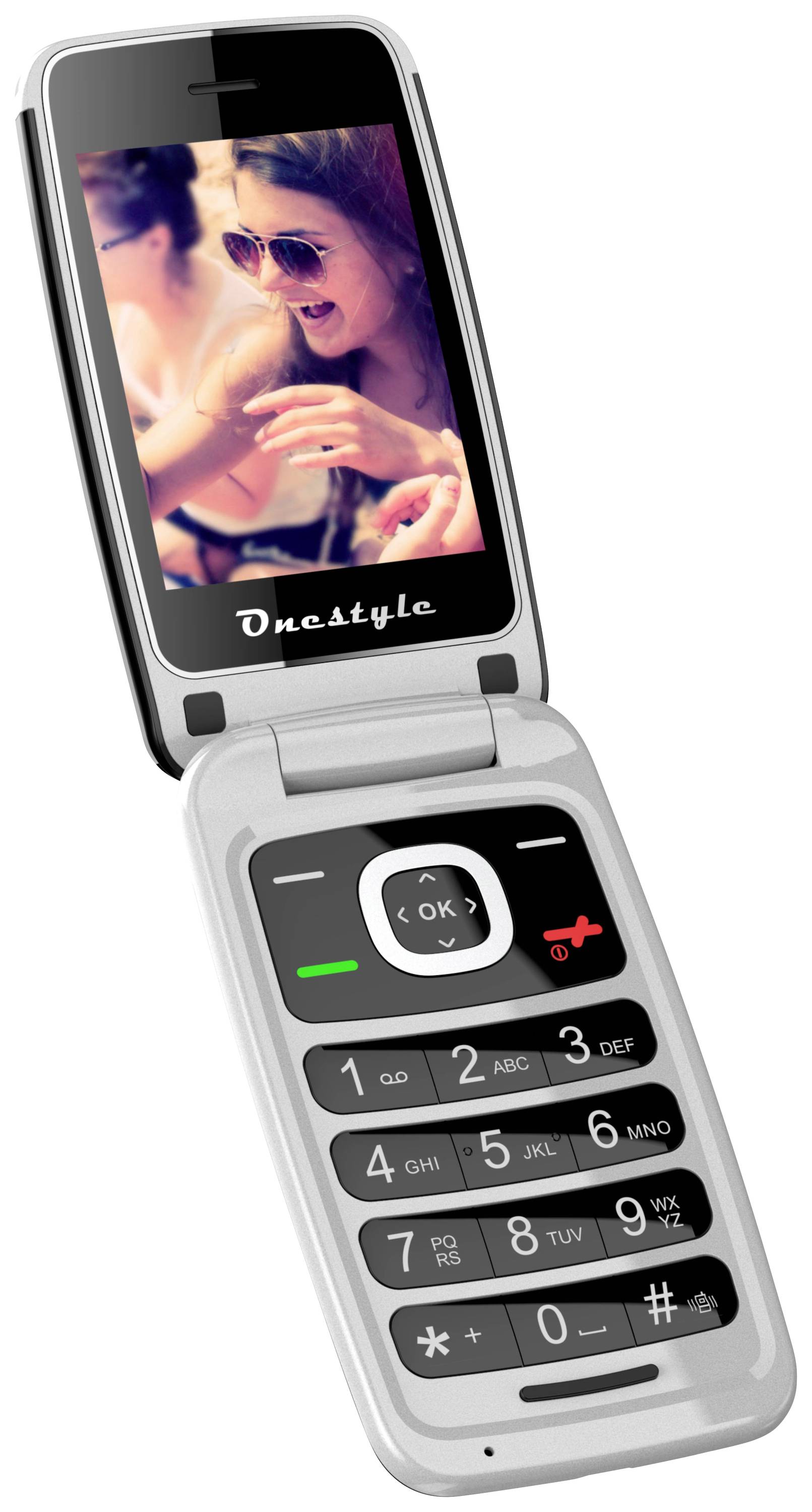 Das Onestyle Silver Plus ist ein formschönes Klapphandy mit großen Tasten und einem schwarzem Design.