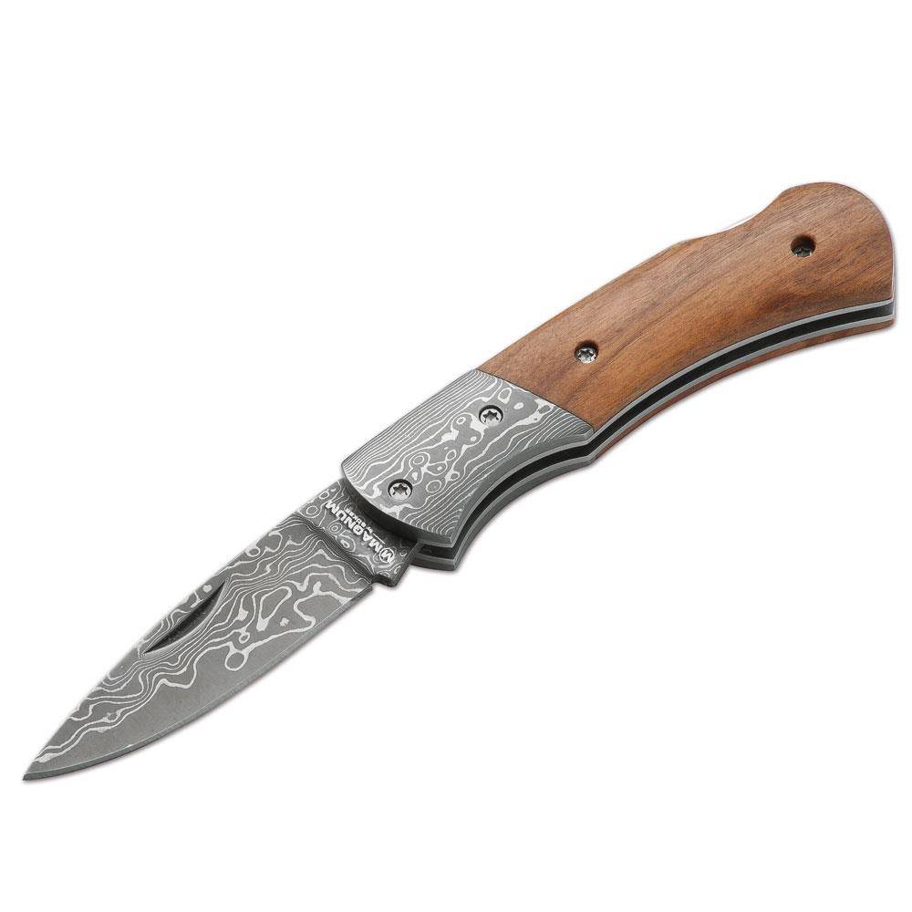 Ein edles und hochwertiges Messer, um das man Sie beneiden wird. Die Klinge ist aus echtem Damast mit 71 Lagen gefertigt. Die Backen werden ebenfalls aus dem kostbaren Material produziert. Bei der Griffbeschalung wurde ebenfalls nicht gespart, hier kommt hochwertiges Olivenholz zum Einsatz. Der Lockback verhindert ein versehentliches Einklappen der Klinge. Ohne Clip.