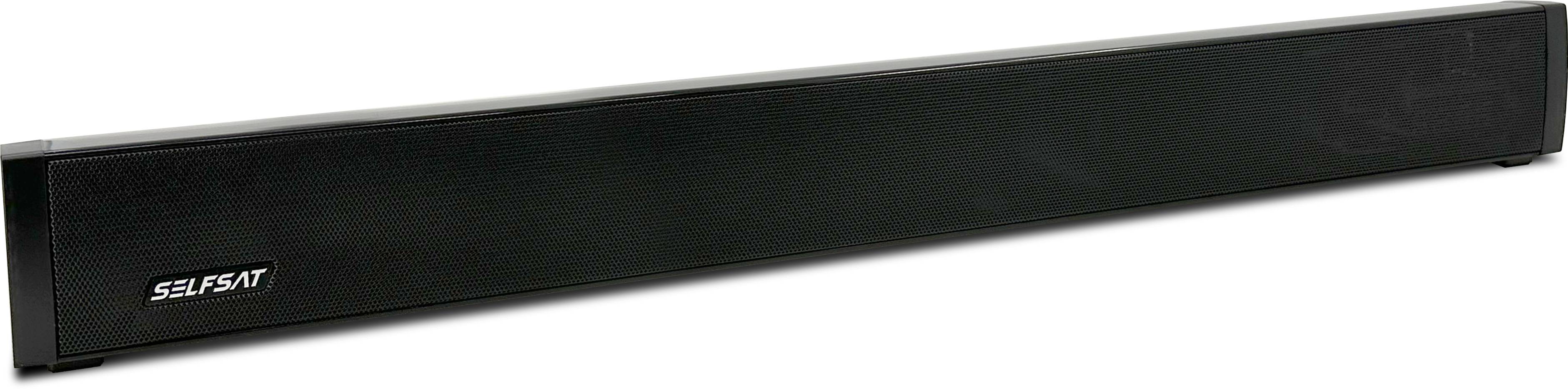 Guter Fernsehklang auch im Wohnmobil oder Wohnwagen. Verbessern Sie den Klang Ihres Fernsehers durch diese 12 Volt Soundbar mit 54 cm Breite (passend für 24" Fernseher), welche z. B. per HDMI and Ihren Camping-TV angeschlossen werden kann. Auf Grund der unterstützten ARC-Funktion lässt sich, bei entsprechender Einstellung im Menü des Fernsehers, die Lautstärke der Soundbar mit der Fernbedienung des Fernsehers steuern, bzw. schaltet sich die Soundbar zusammen mit dem Fernseher ein- oder aus. Die Soundbar hat ein 2.0 Kanalsystem mit 30 Watt Leistung (2 x 15 Watt) im Frequenzbereich 110Hz - 15kHz und einen digitalen Amplifier mit DSP. Sie verfügt über eine deaktivierbare LED-Anzeige, Bluetooth, einen USB-Anschluss und einen AUX Eingang. Die Stromversorgung erfolgt über ein 12 Volt DC Zigarettenanzünder-Kabel oder ein 110-240 Volt AC Netzteil, welche sich neben der Soundbar ebenso im Lieferumfang befindet wie eine Infrarot Fernbedienung, ein HDMI Kabel, ein 3,5 mm Audio-Kabel und ein RCA-Audio-Kabel. Features: - 12 V- Soundbar mit 54 cm Breite passend für 24“ TV-Geräte - Für guten Fernsehklang auch im Wohnmobil oder Wohnwagen - 2.0 Kanalsystem mit 30 Watt Leistung - Bluetooth-Funktion für drahtloses Musikstreaming - Digitalen Amplifier mit DSP - Deaktivierbare LED-Anzeige - USB-Anschluss und AUX-Eingang - ARC-Funktion - Inkl. Fernbedienung, HDMI-Kabel, Audio-Kabel und RCA-Audio-Kabel Technische Daten: - Betriebsspannung: 110…240 V~ oder 12 V- (Zigarettenanzünder) - Sinus-/Musikleistung Lautsprecher: 15/30 W - Frequenzbereich: 110…15.000 Hz - Anschlüsse: USB A, HDMI, AUX-Eingang 3,5 mm Klinke - Lautsprechersystem: 2.0 - Bluetooth-Version: 5.0 - Bluetooth-Reichweite: ca. 10 m - Betrieb Fernbedienung mit 2x AAA Batterien (nicht im Lieferumfang enthalten) - Reichweite Fernbedienung: ca. 8 m - Farbe: schwarz - Maße: 540x60x65 mm Lieferumfang: - SELFSAT SOUNDBAR 24 - IR-Fernbedienung - 1