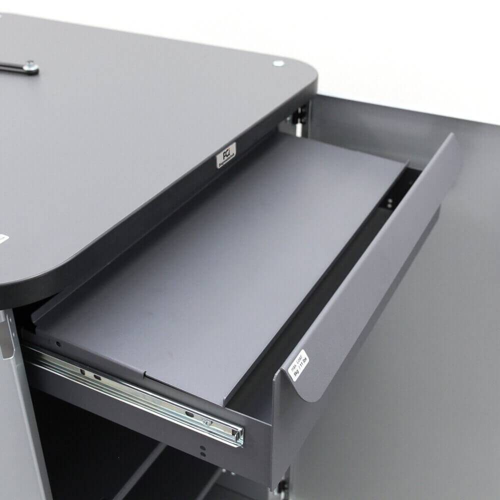 • Gleitet auf Schubfach, daher Stauraum des Schubfachs voll verfügbar