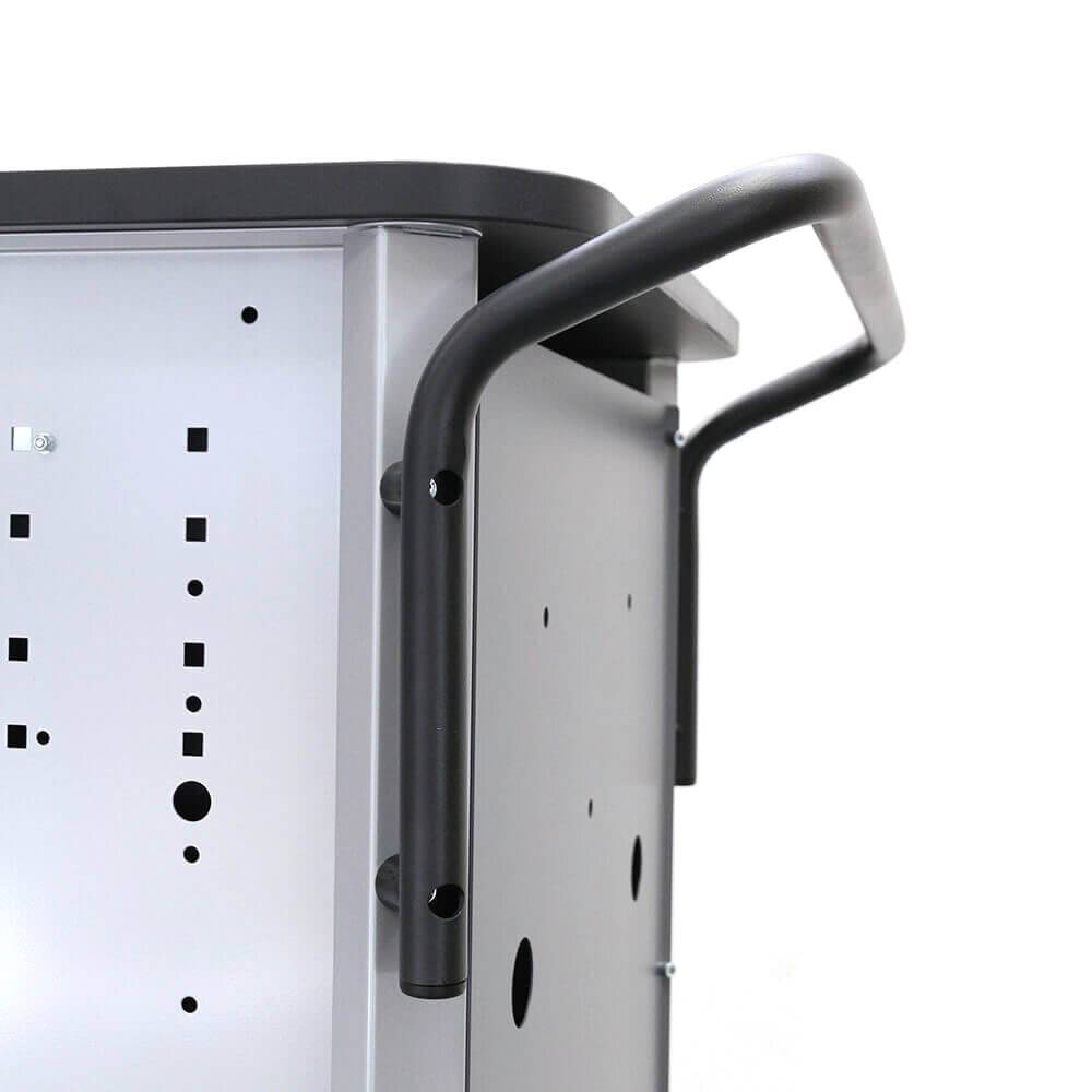 • Pulverbeschichteter Bügelgriff für besseres manövrieren des Wagens