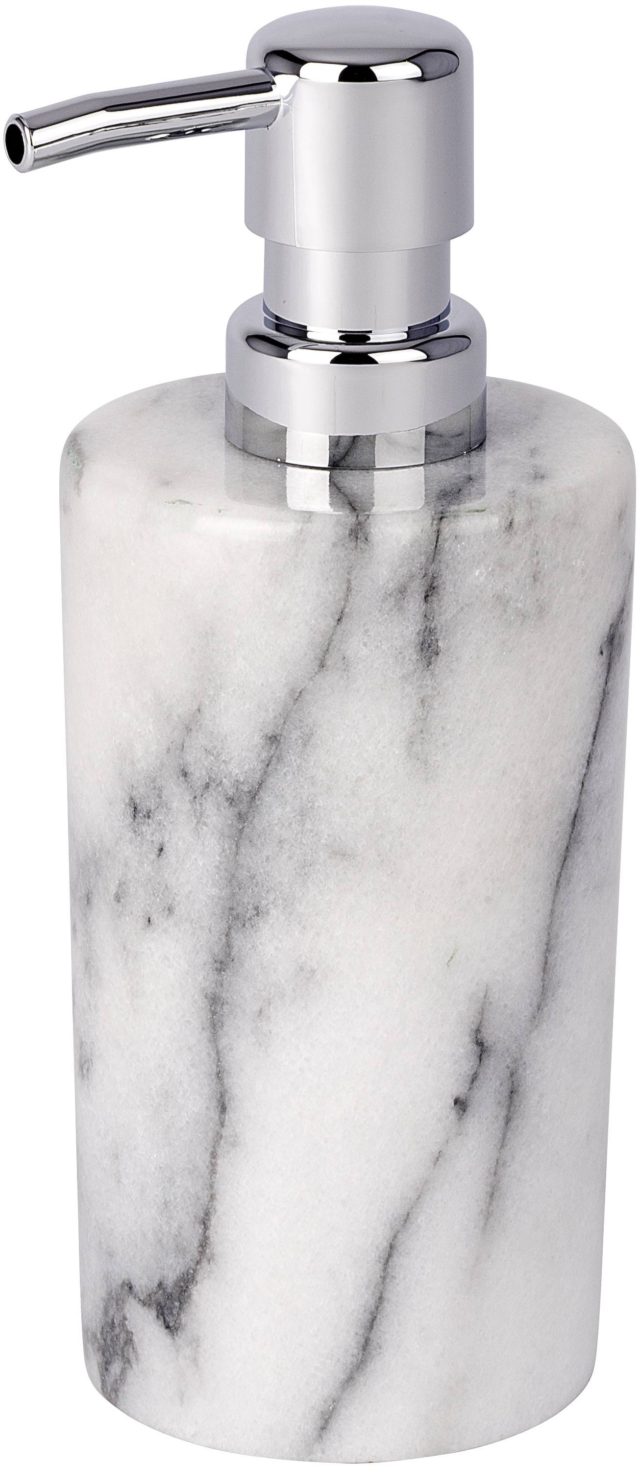 Der hochwertige Seifenspender aus der Bad-Accessoires Serie Onyx in anspruchsvollem Marmor-Design wird in jedem Bad oder Gäste-WC zum absoluten Hingucker. Die Kombination aus schlichter Eleganz und erlesenem Marmor schafft eine ganz besondere, warme Atmosphäre im Badezimmer. Mit dem natürlichen Marmor verzaubern Sie ihr Bad in Ihre individuelle Wellness-Oase, in der Sie entspannen können.