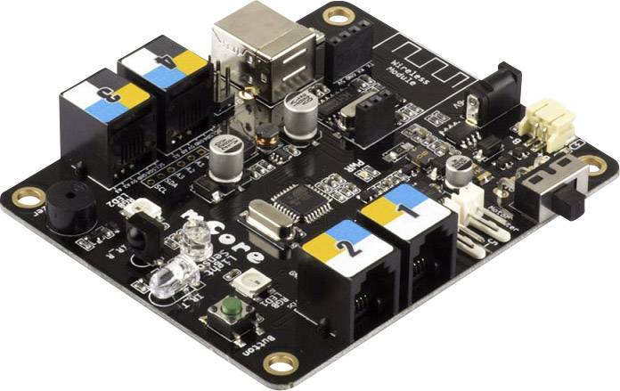 mCore ist eine leicht zu handhabende Hauptsteuerplatine, die speziell für den mBot angefertigt wurde. mCore basiert auf Arduino Uno und beinhaltet eine Vielzahl an Fahrzeugsensoren, wie einen Buzzer, Lichtsensor, RGB LED, etc., die es einem leicht machen, Elektronik spielerisch zu erlernen.